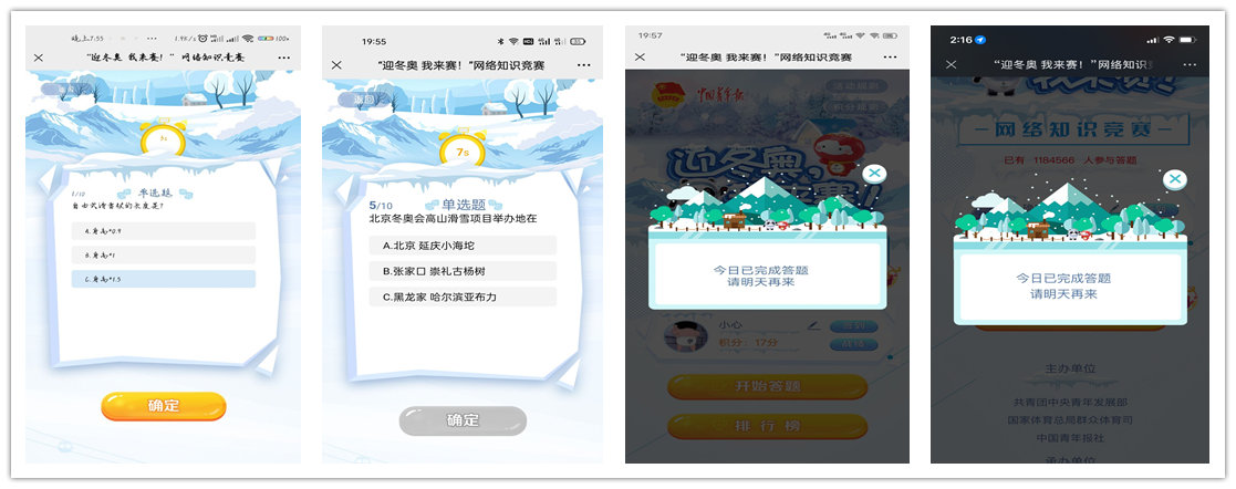 为落实习近平总书记“三亿人上冰雪”的指示精神,抓住2022年北京冬奥会契机,进一步落实《关于面向全国大学生团员组织开展“青春爱运动 健康强中国”全民健身活动的通知》要求,引导大学生团员青年关注冬奥赛事、弘扬体育精神,全方位发动大学生团员青年积极参与全民健身活动。共青团中央青年发展部、国家体育总局群众体育司、中国青年报社、中国青年网联合推出“迎冬奥,我来赛!”网络知识竞赛活动。日前,建筑工程学院团总支、学生会积极组织青年学生参加冬奥网络答题、分享冬奥观赛体会、共同为中国奥运健儿加油鼓劲。