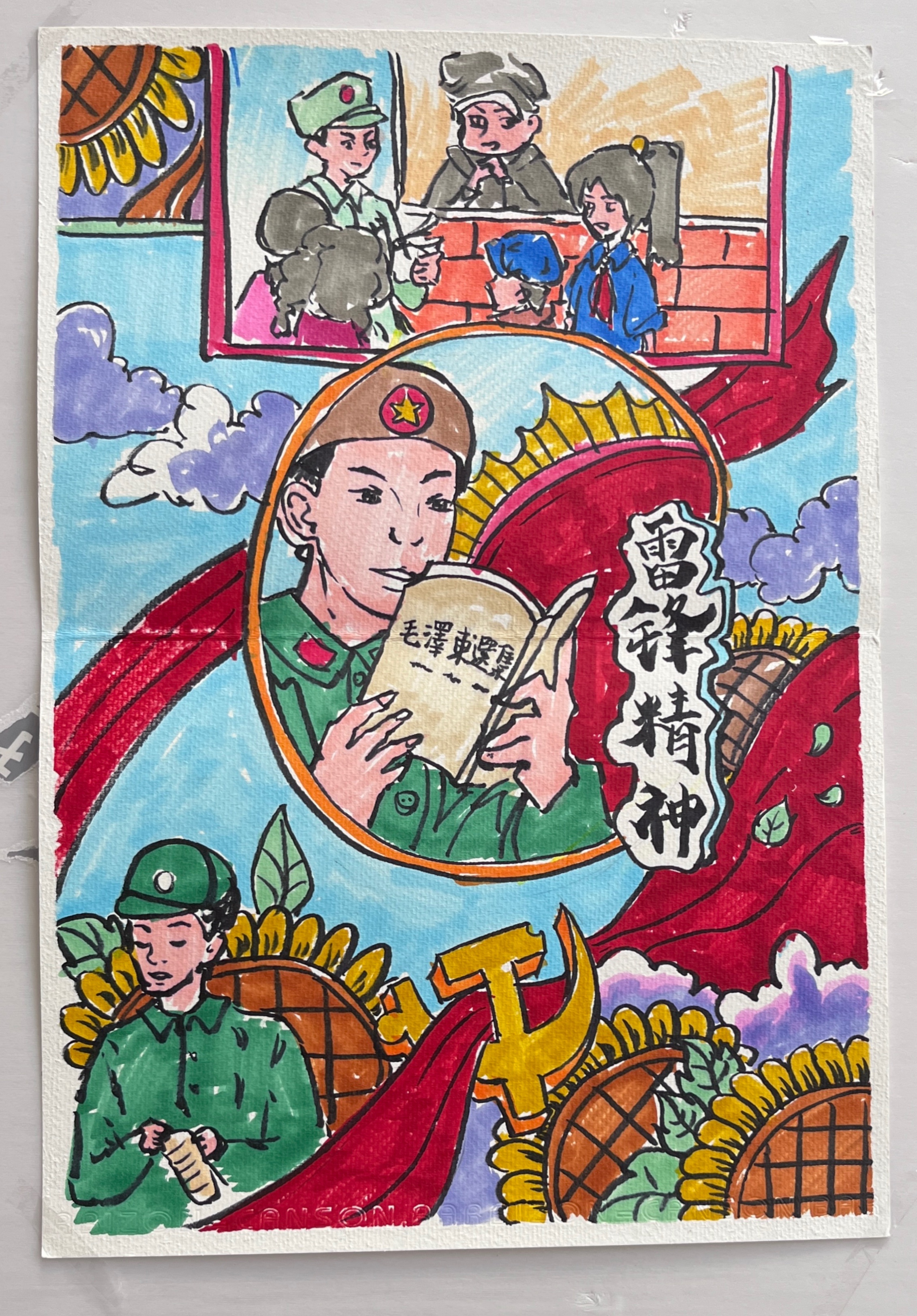 在同学们的精巧构思下,黑板报、海报、手抄报主题突出,内容丰富,布局美观,对雷锋的生平事迹进行了多方位宣传,宣传感人事迹、收录雷锋日记、向雷锋同志学习等。