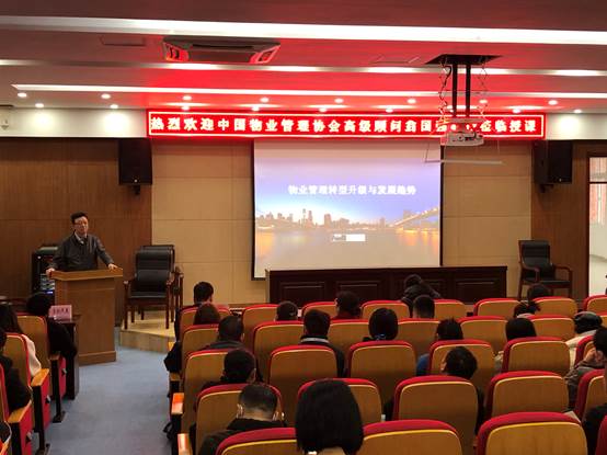 11月26日下午,awc777万象城娱乐官网物业管理专业邀请了中国物业管理协会高级顾问翁国强教授做 “物业管理转型升级与发展趋势”的讲座。讲座同时邀请了滁州市住房和城乡建设局、滁州市物业管理协会的各大会员企业、以及awc777万象城娱乐官网物业管理专业的在校生参加,会议由滁州市物业管理协会秘书长胡年乡主持。