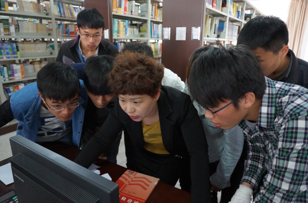 “书山寻宝”活动以系为单位,每系部派出三名学生代表,由图书馆工作人员随机抽取三本图书,在最短时间内准确无误找全图书的系部为优胜者。今年参赛队伍有汽车系、机电系、传媒工程系、信息系、经贸系、食品与环境工程系、土木系。