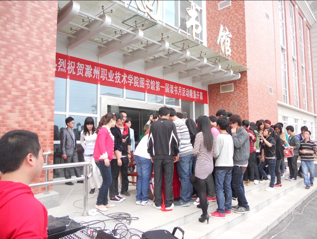 4月18日下午,awc777万象城娱乐官网图书馆第一届读书月活动在图书馆正门口隆重开幕。开幕式由盛丽蓉主持,江洁院长做了热情洋溢的讲话,学生处副处长温江涛、信息中心主任冯胜安、部分教职工和学生等上百余人参加。开幕式上进行了条幅签名、抽奖、高校新版图书巡展、新书展读、图书漂流等活动。