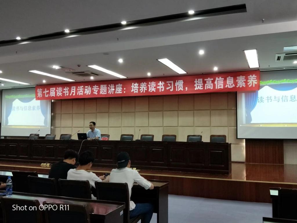 2018年5月15日19点,第七届读书月活动专题讲座:“培养读书习惯,提高信息素养”在综合楼五楼报告厅举行。主讲人是图书馆刘涛老师。参加此次讲座的有各系学生代表以及院学生会成员。