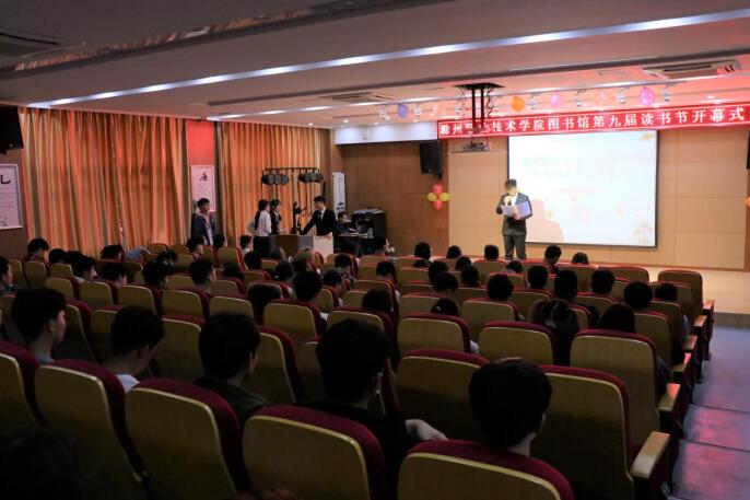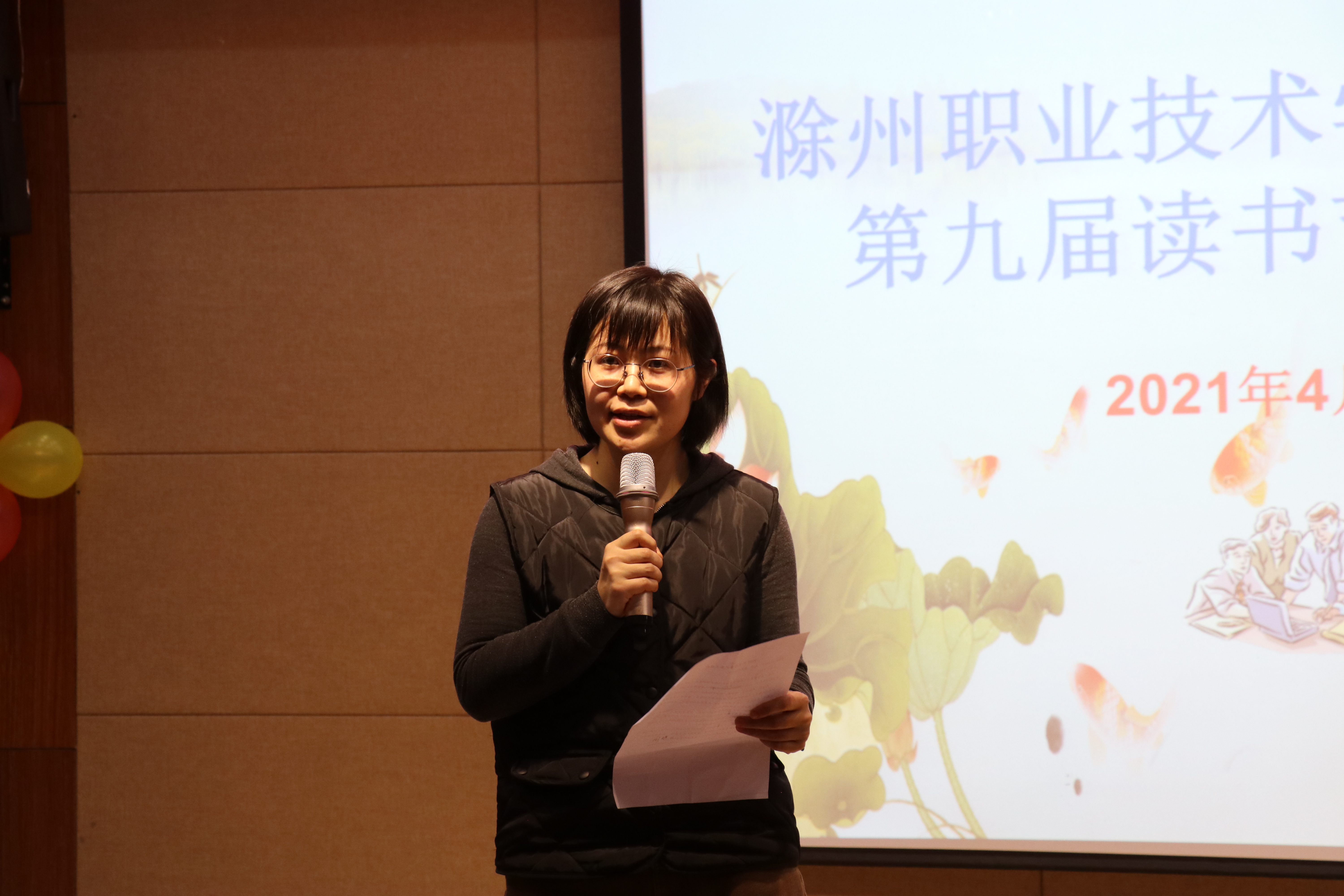开幕式活动第一项,由图书馆张雯雯老师为开幕式活动致辞。她指出,读书要从个人出发,从学识出发,从学校出发,并向全校师生发出读书倡议:多读书,读好书,与书相伴,把读书当成人生不可分割的一部分。希望每一位滁职人都能爱读书,享受读书的乐趣。