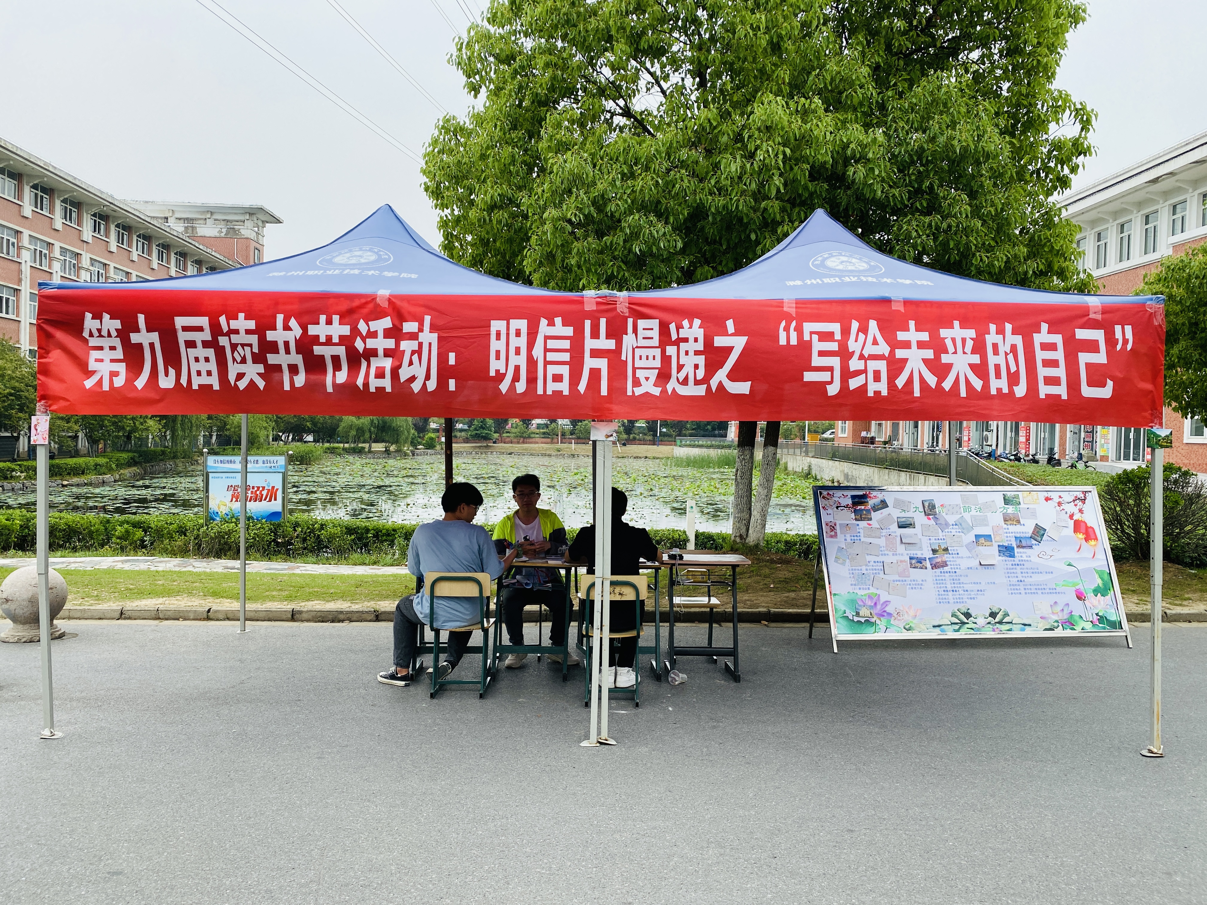 5月17日—18日,第九届读书节活动之明信片慢递:“写给未来的自己”在女生宿舍一号楼下举行。本次活动由图书馆刘涛老师指导,校学生会学习部协助。