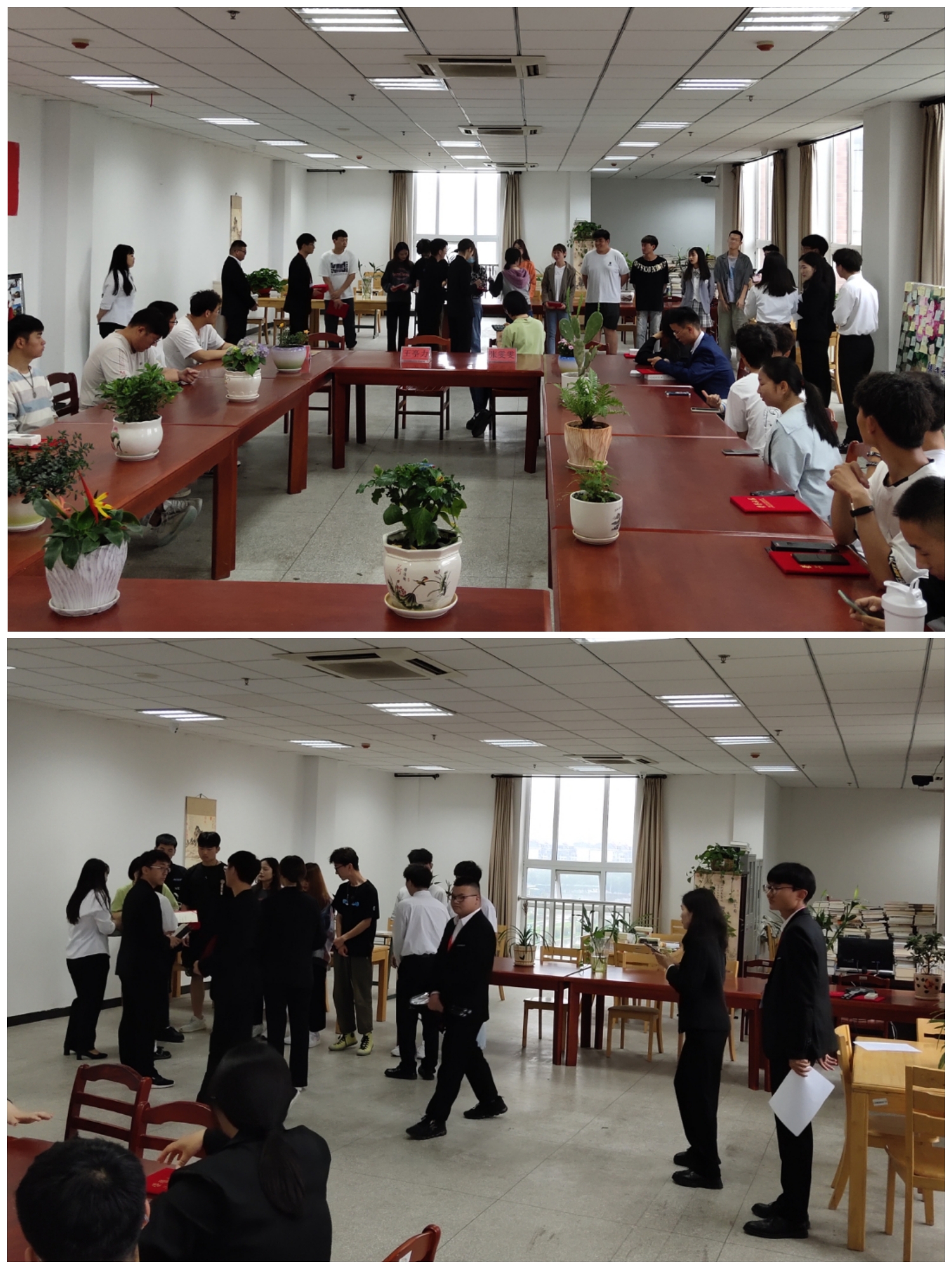 5月26日下午三点,awc777万象城娱乐官网第九届读书节活动闭幕式暨颁奖典礼在awc官网图书馆三楼阅读推广活动室举行。图书馆王亭力老师、张雯雯老师、刘涛老师以及校学生会学习部全体成员和各二级学院获奖学生参加了闭幕式。此次活动由校学生会学习部刘臣海和林强兵两位同学主持。