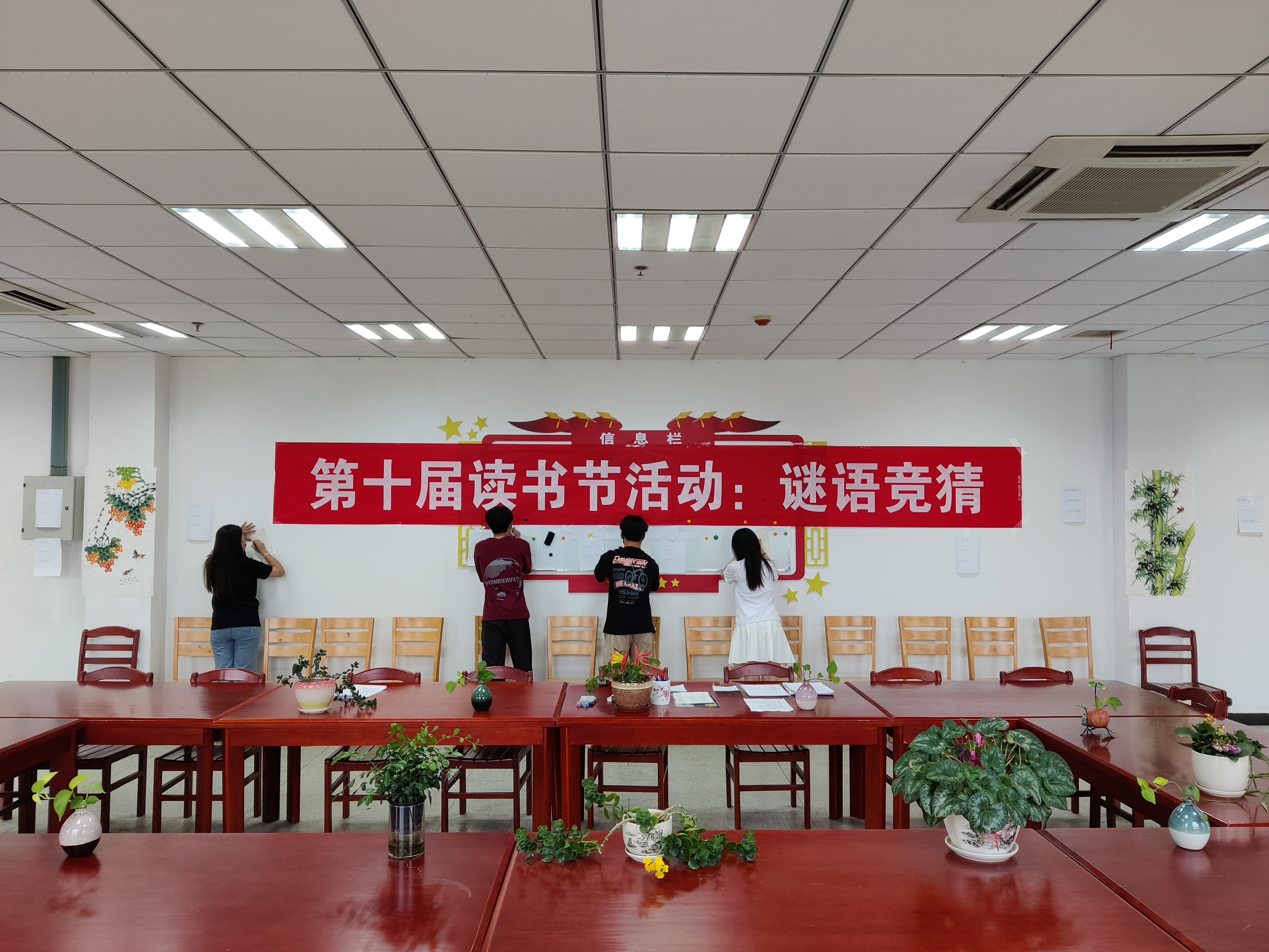2022年5月19日到21日,第十届读书节活动之谜语竞猜在图书馆301举行。本次活动由图书馆刘涛老师指导,校学生会学习部同学协助。