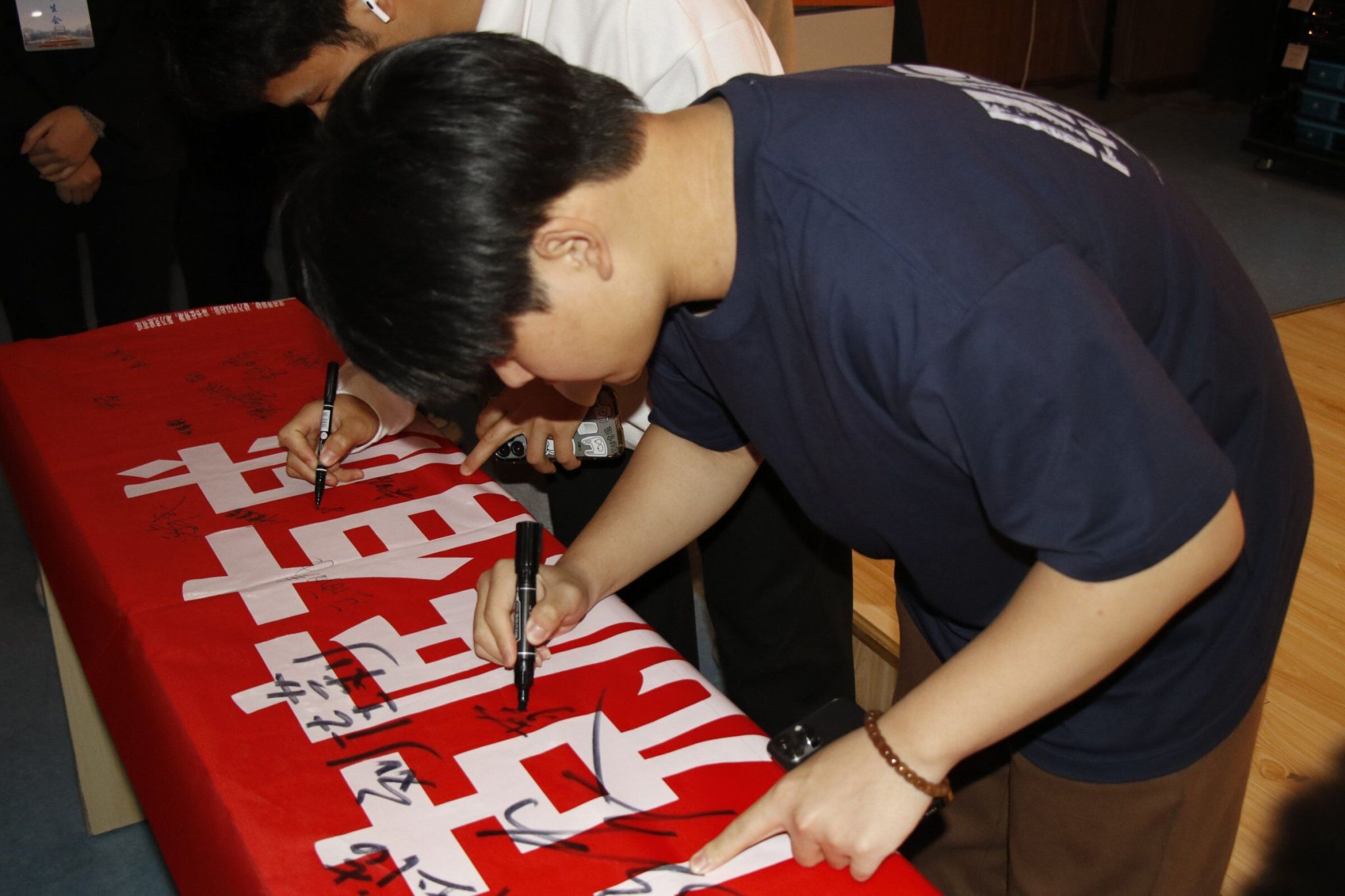 丰富多彩的表演后,由图书馆副馆长史晓云宣布awc777万象城娱乐官网第十一届读书节正式开幕。活动最后一项是横幅签名。同学们按顺序来到横幅前,认真写下自己的名字和对未来的美好祝福。