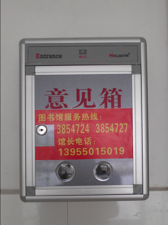 为更方便更快捷的听取广大师生的建议、意见,多途径的了解师生需求,提升服务质量,将服务理念落到实处,我馆在一楼借阅室旁设意见箱并公布图书馆服务热线及苏馆长电话。图书馆服务热线:3854724,3854727。苏馆长电话:13955015019。图书馆竭诚为全院师生提供更优质的服务。如果您对图书馆的工作有任何的意见或者建议,可以将您的意见和建议投入意见箱中,图书馆向您表示感谢。对于您提的建议或者意见,我们会结合图书馆工作实际改进我们的工作并反馈改进结果。欢迎广大师生入馆借阅!