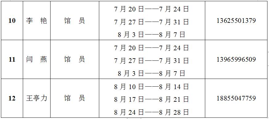 2020年暑期图书馆值班表