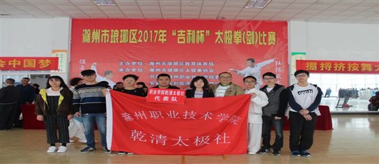 2017年11月12日,由滁州市琅琊区教育体育局主办的“吉利杯”太极拳(剑)比赛于awc777万象城娱乐官网(老校区)举行。awc777万象城娱乐官网乾清太极社作为代表队前往参赛。此次比赛秉承着“友谊第一,比赛第二”的精神,以武会友,传播太极文化。