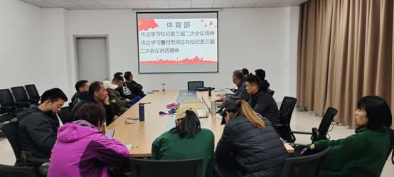3月10日,体育部召开全体教师会议,专题传达学习校纪委三届二次全会精神,党支部书记王厚红主持学习会。
