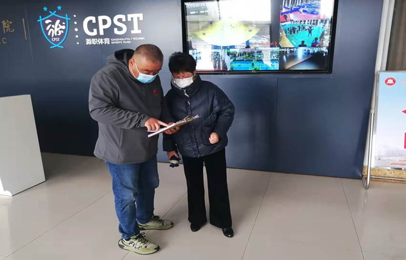 3月25日下午,校党委委员江洁深入体育部,针对体育场馆做好日常消杀、记录和场地通风情况进行督查指导,并现场查看了正在体育馆进行的核酸轮检工作,体育部主任孙强陪同督查、检查。