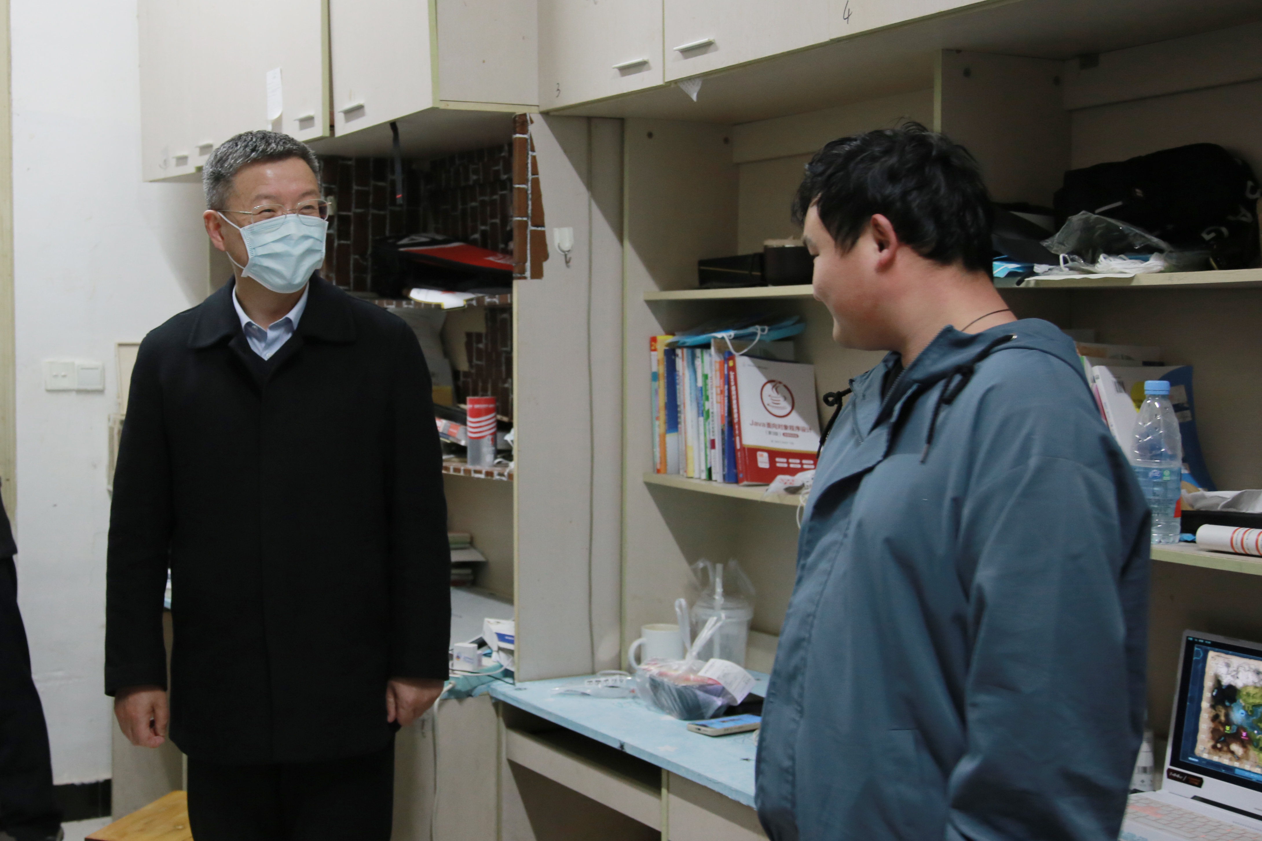 随后,曹付忠走进了学生宿舍,和同学们进行了亲切交谈,详细询问学生们在校学习、生活情况,再三叮嘱学生们要严格遵守学校疫情防控各项规定,做好个人防护。走访过程中,曹付忠倾听了同学们对即将到来的线上教学的看法,鼓励学生们以梦为马、奋发图强,保持积极向上的心态,用勤奋和刻苦为青春增色添彩。学生纷纷表示,会珍惜大学的宝贵时光,努力学习,共抗疫情,不辜负老师们的期望。