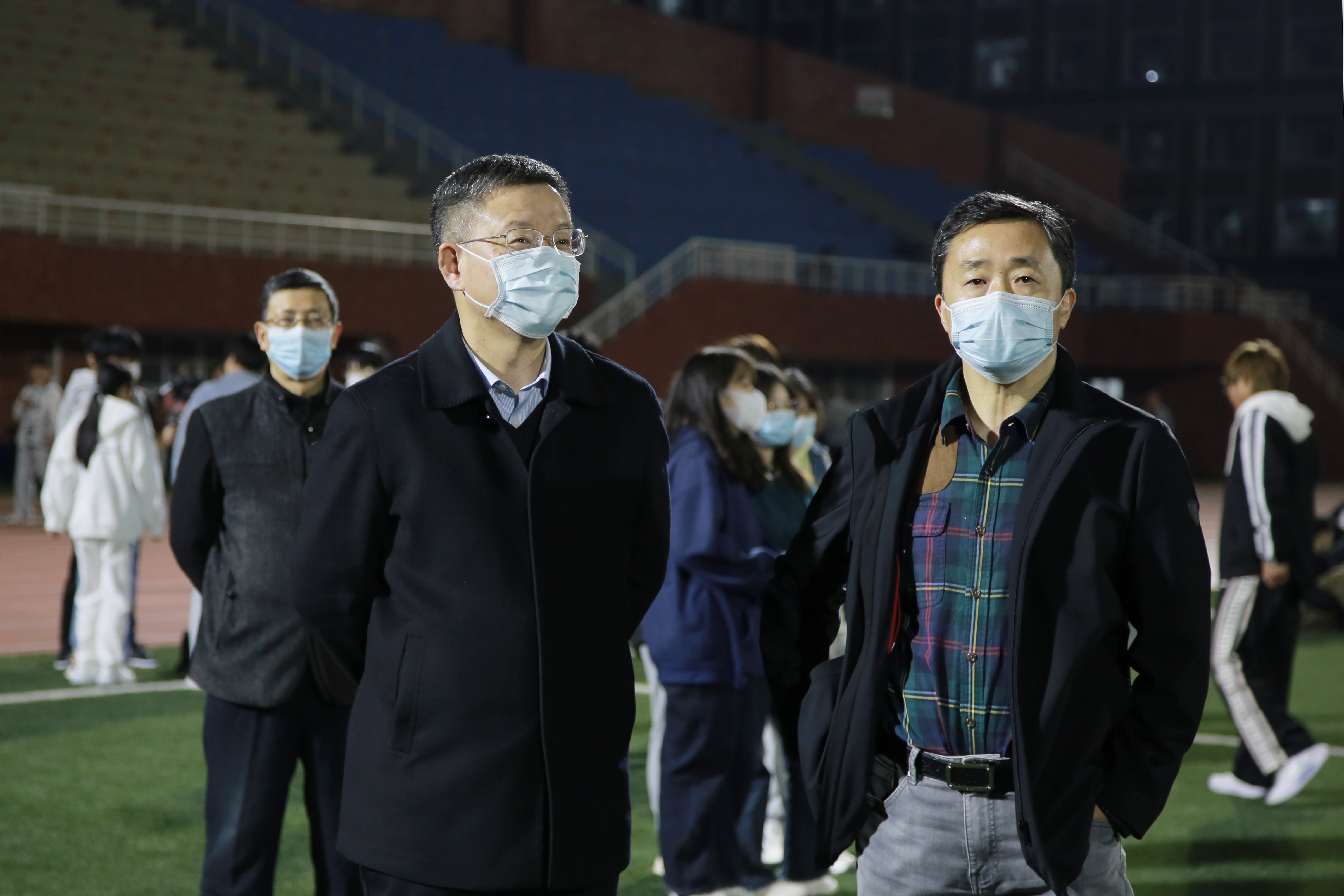 曹付忠一行首先来到了学校操场。操场上,人声鼎沸,处处洋溢着青春的气息。数百名同学整齐划一的跳着广场舞,以充满活力的身姿,配合动感的背景音乐,展现出当代大学生朝气蓬勃的生活气息,为封闭管理下的校园生活增添了活力。