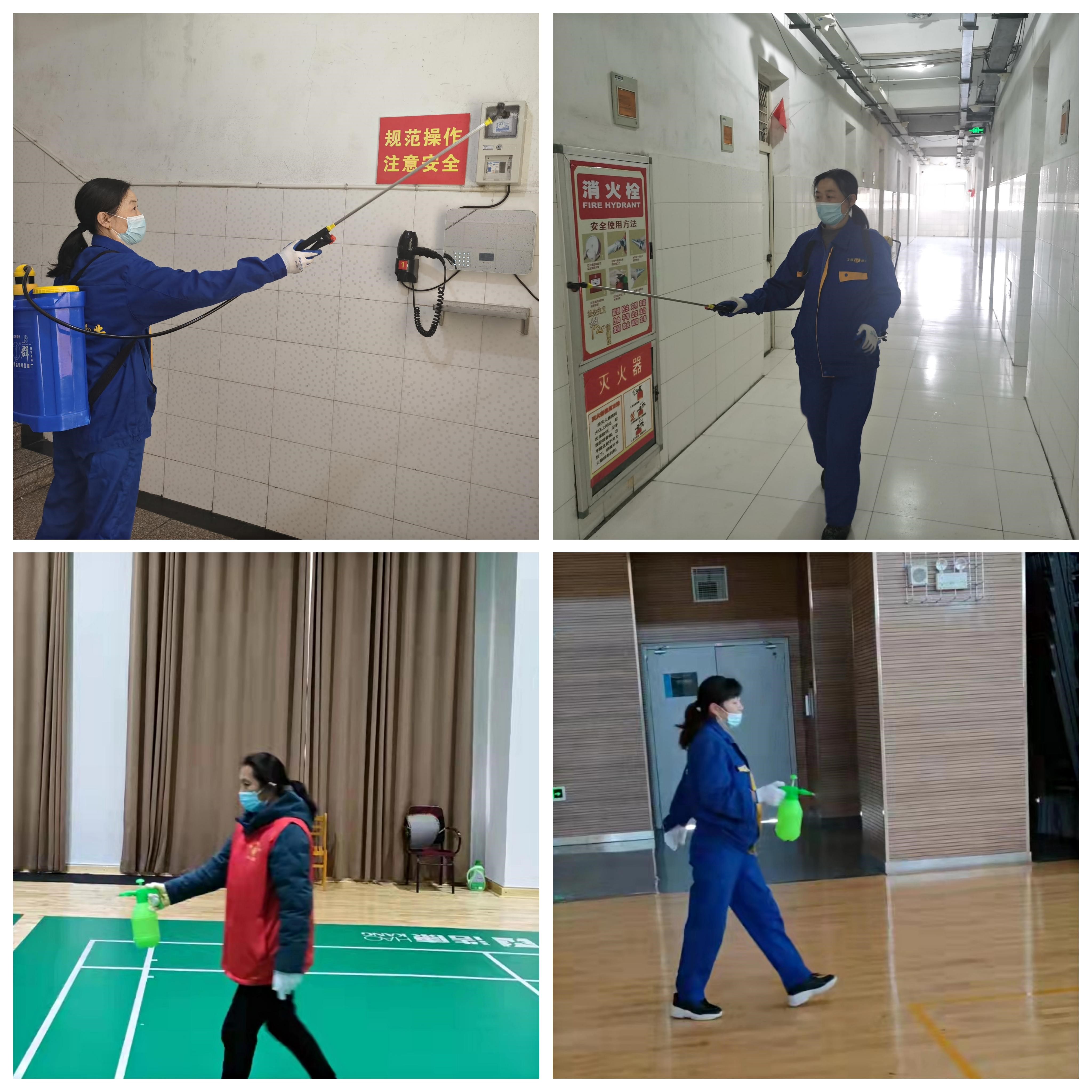 在疫情防控特殊时期,为了消除病毒隐患,阻断疫情传播途径,在做好日常环境清洁的基础上,宿管和保洁员们坚持每天两次对公寓大厅,宿舍楼道、楼梯,教学楼、办公楼和其他公共区域进行消杀,不留死角,不留盲区,并及时填写消毒记录,由专人进行监督检查,确保工作落实到位。每日及时清理校内垃圾到指定地点,加强送运工作,全方位保障疫情期间校内环境卫生安全。