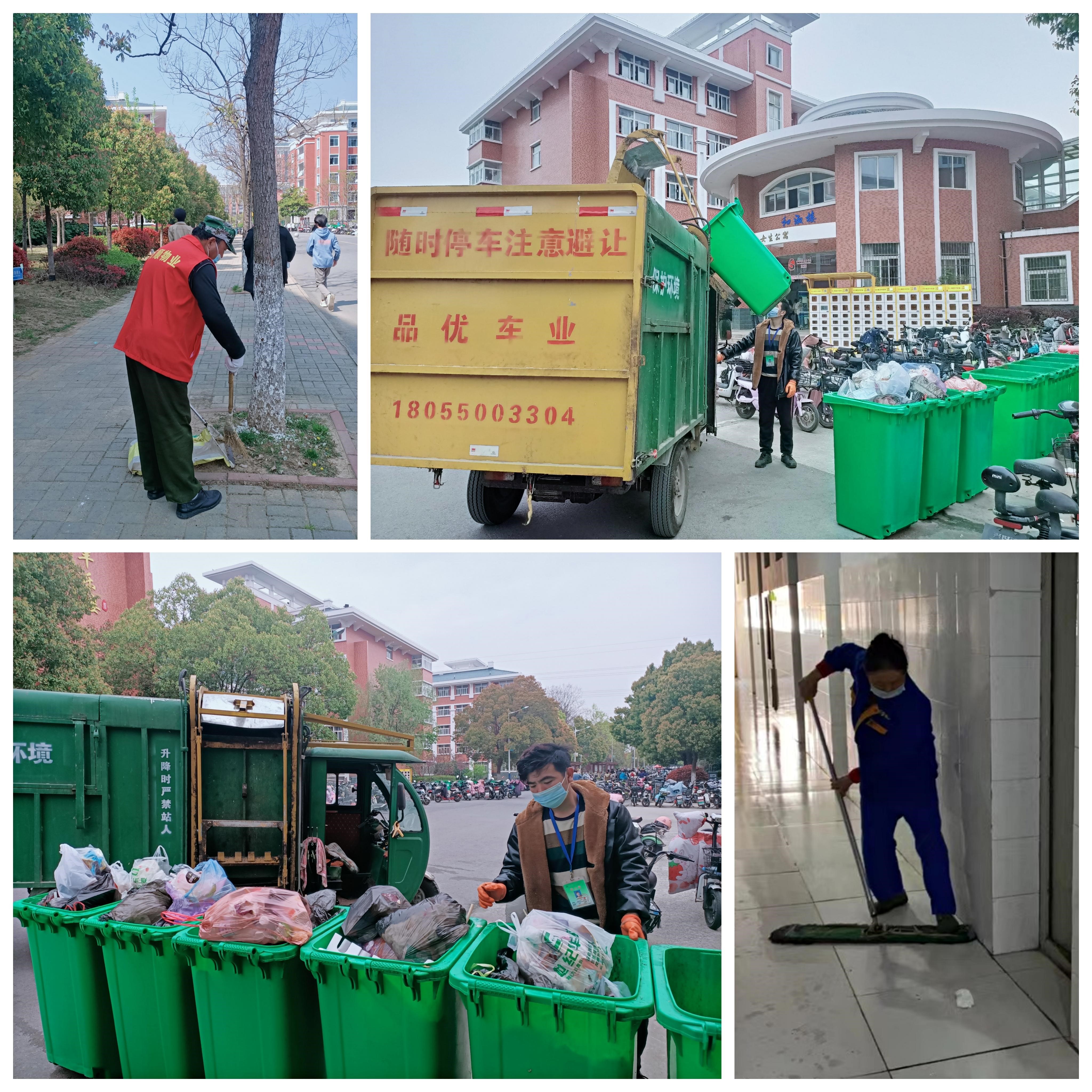 因为封校突然,部分员工未到岗,物业管理人员坚守一线,不怕苦不怕累,主动承担起打扫隔离室及学生公寓外围环境卫生,用他们的责任筑牢疫情防控坚固防线。