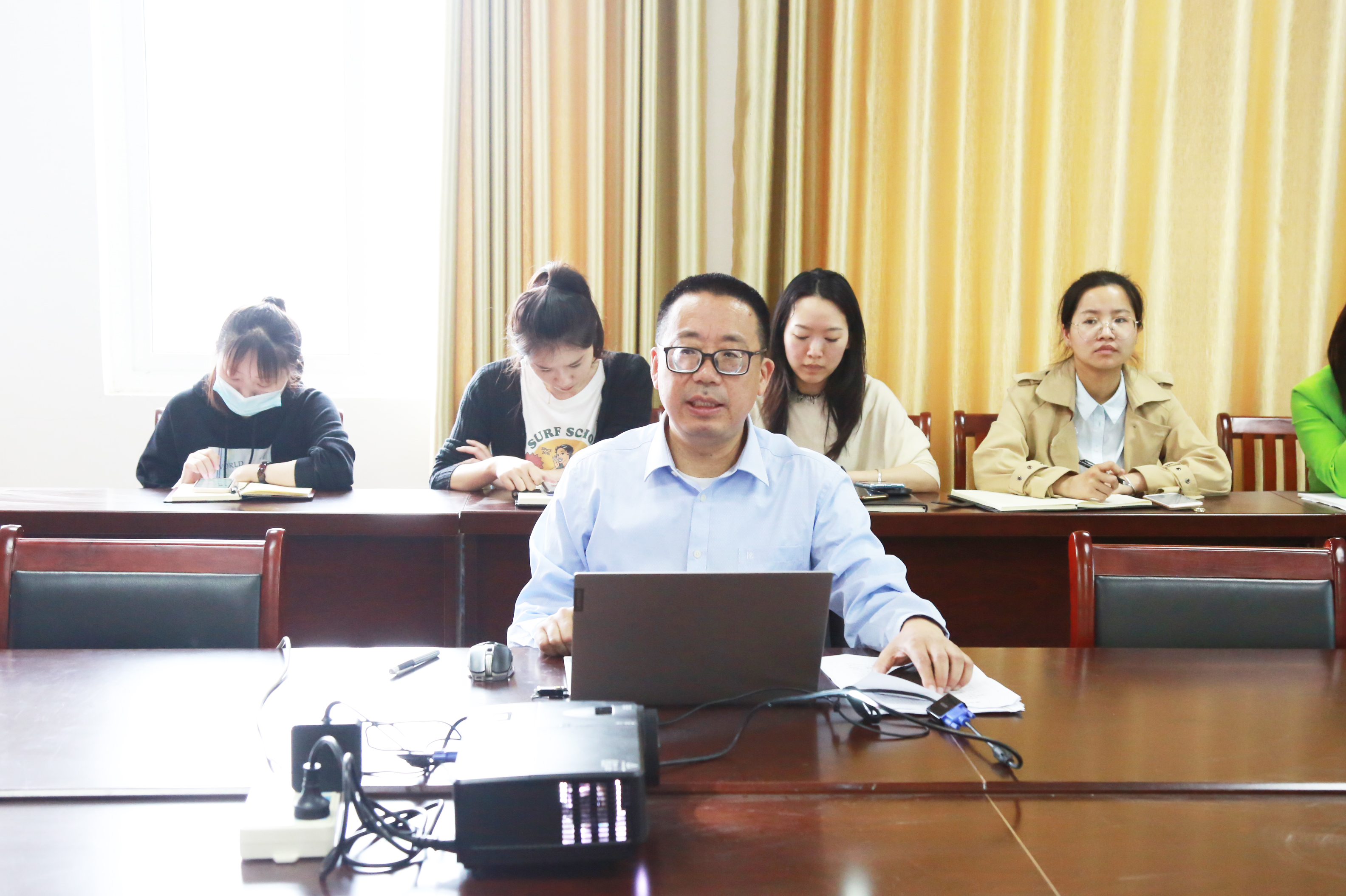 5月13日,校党委委员、宣传统战部部长、学生工作处处长李平权教授在大学生活动中心317会议室主讲题为“遵义会议 永放光芒”党史学习教育专题党课。机关党总支第七党支部、基础教学部党总支和马克思主义学院党支部教师一起聆听党课。
