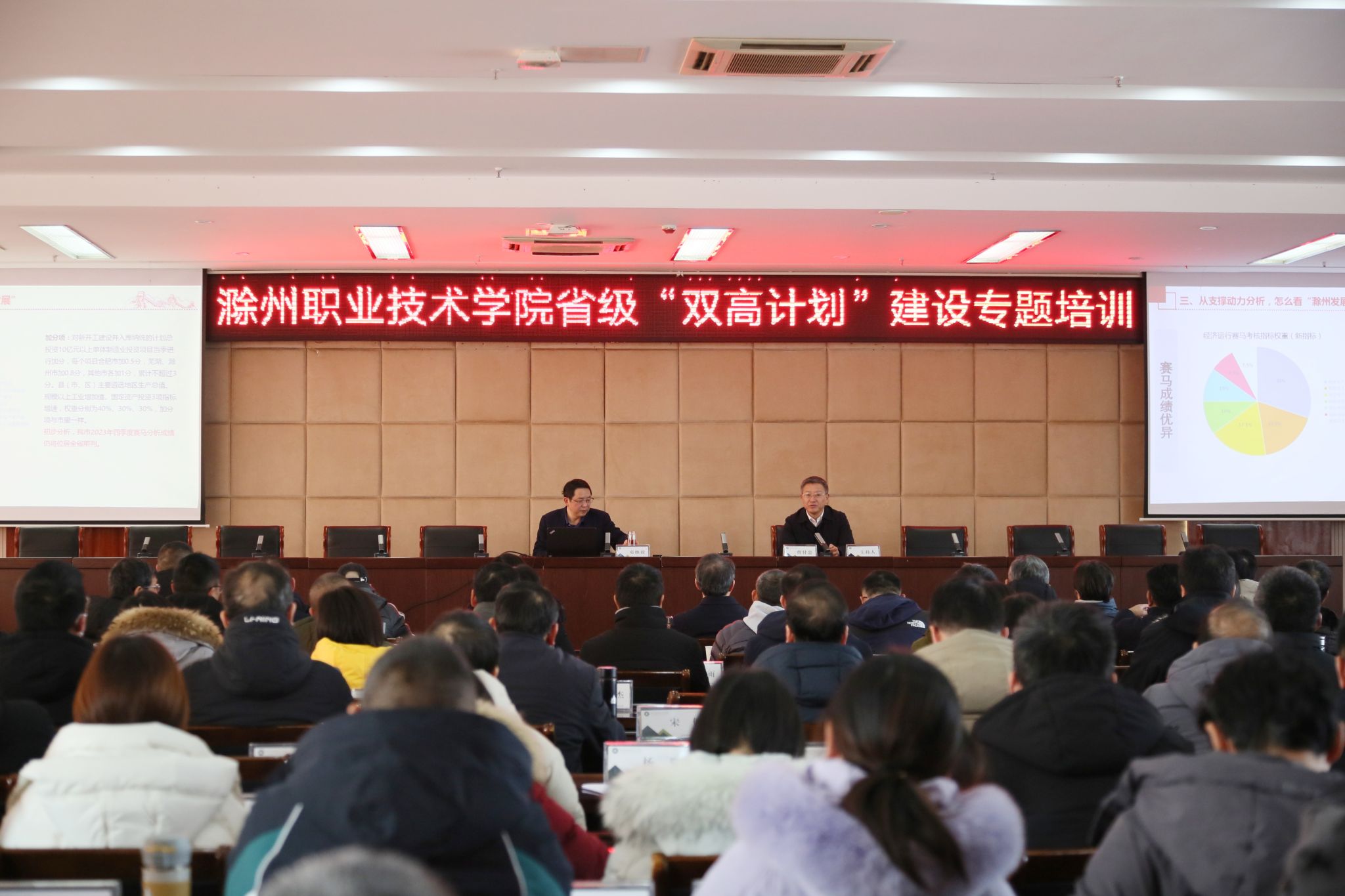 为进一步明确“双高校”建设目标任务的内涵,增进对滁州市经济社会发展态势的了解,找准服务地方经济社会发展的方向和重点,1月25日上午,awc官网邀请滁州市委常委、市政府常务副市长邓继敢在5楼会议室作专题报告,校领导、各部门正副职、教学院部党政正副职、系(教研室)主任、专业负责人、教授聆听了讲座。讲座由校党委书记曹付忠主持。