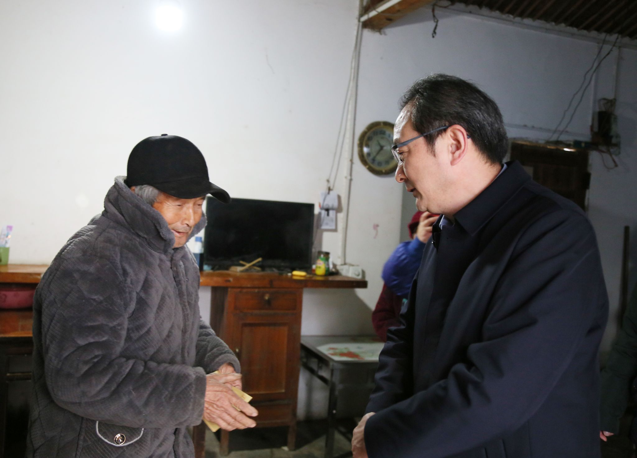 许雪峰一行入户慰问当地脱贫群众,与他们亲切交谈,为他们送上慰问金,仔细询问其生产生活、家庭子女、身体健康情况,了解生活上的急难愁盼问题,叮嘱他们要保重身体,鼓励他们在新的一年里坚定信心,克服当前困难,以积极向上的态度面对生活。