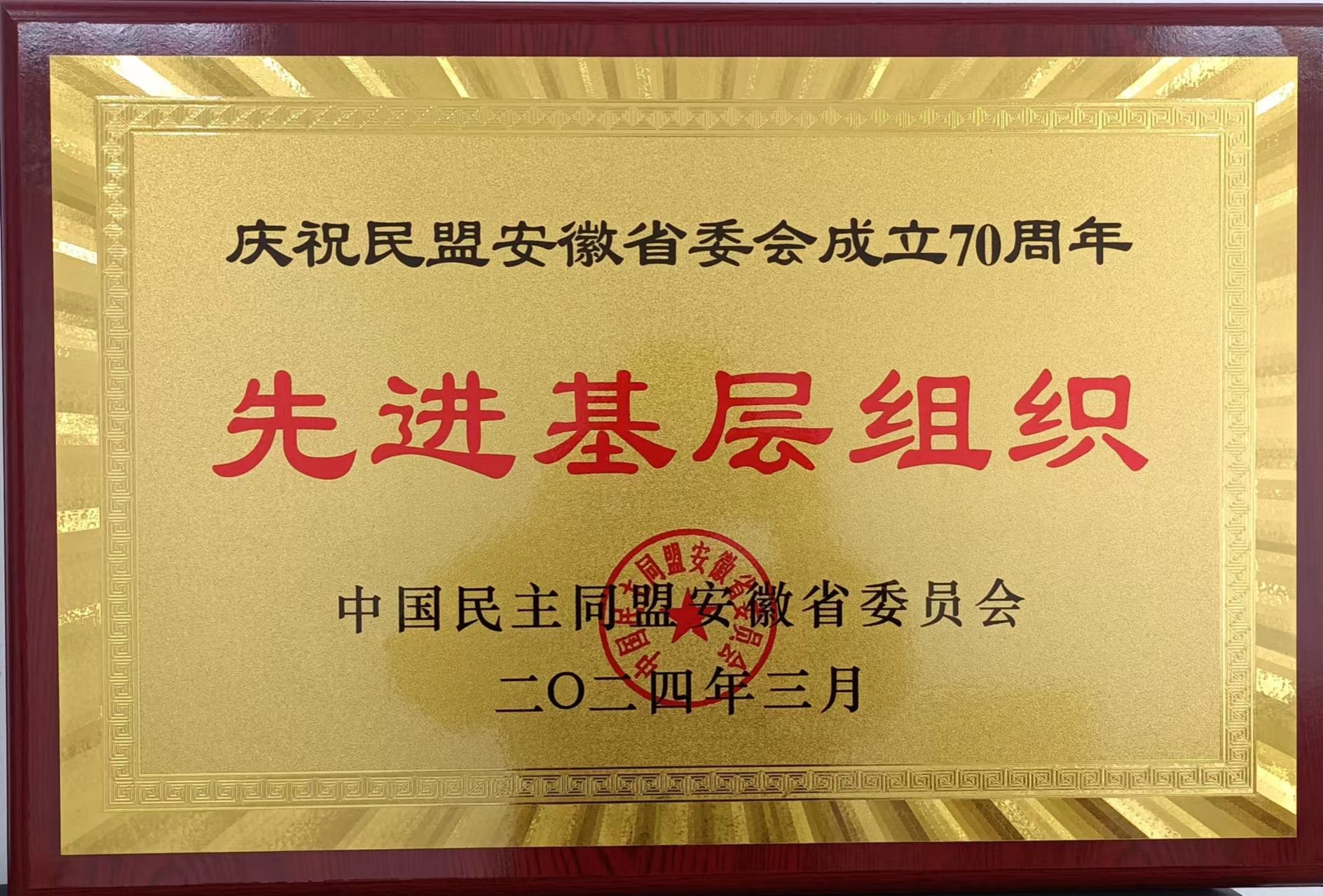 awc官网民盟awc777万象城娱乐官网支部(以下简称民盟滁州职院支部)被民盟安徽省委授予“先进基层组织”荣誉称号。