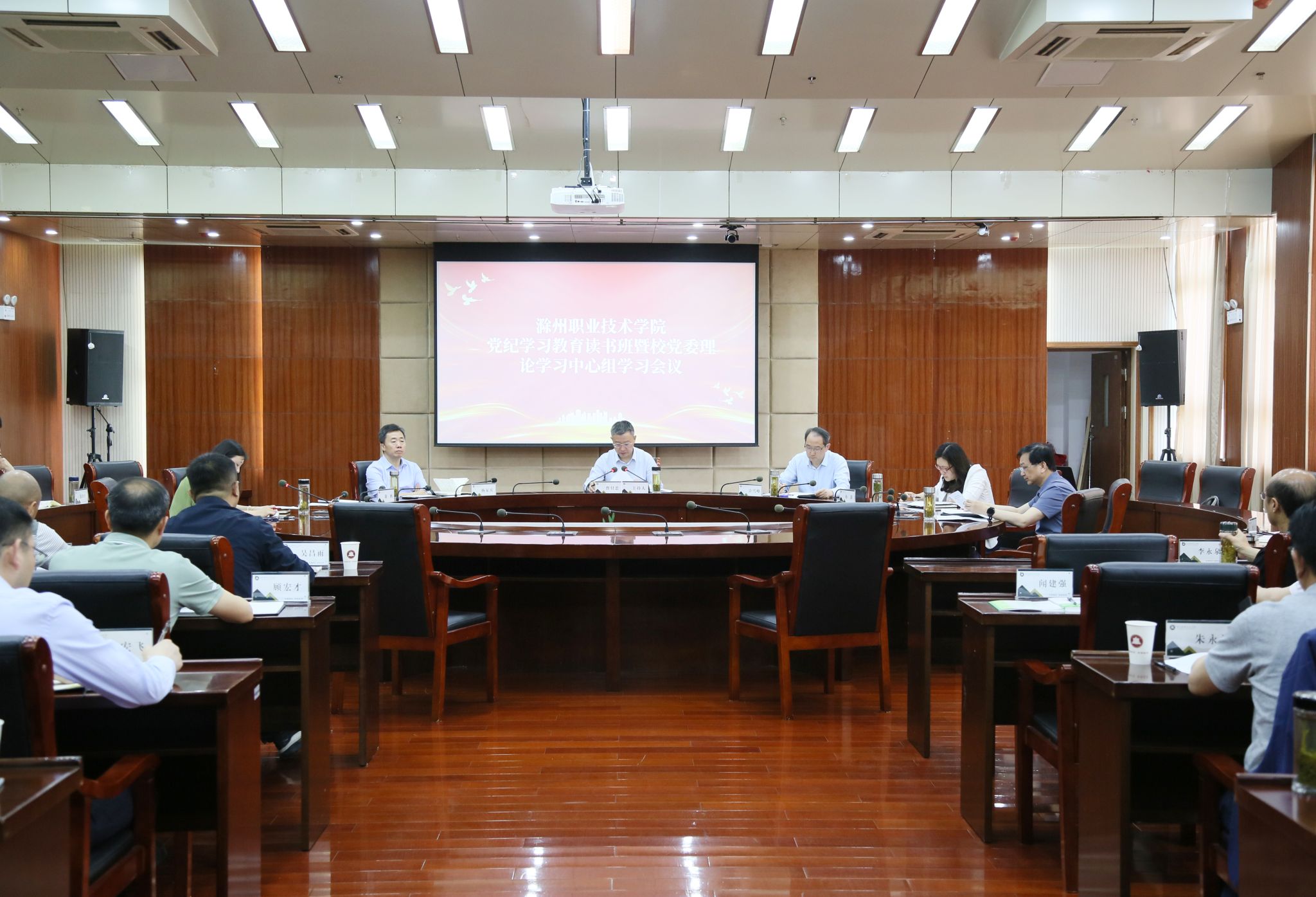 5月17日上午,学校在综合楼十一楼会议室举行党纪学习教育读书班专题研讨暨党委理论学习中心组(扩大)学习会议,校党委书记曹付忠主持会议并讲话。校党委副书记、校长许雪峰,校党委副书记杨家庆,校领导孙静、王冬、王宇,各教学院部、各部门主要负责同志和列席中心组学习会议的有关负责同志出席会议。