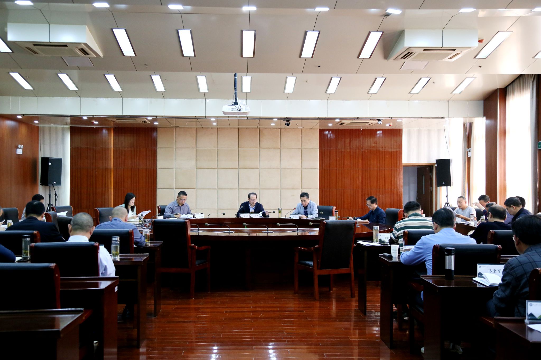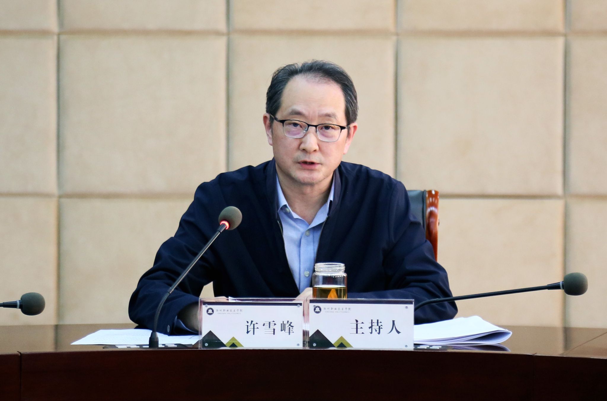 3月26日下午,学校在综合楼11楼会议室召开党委理论学习中心组(扩大)学习会议,校党委副书记、校长许雪峰主持会议并讲话。校党委副书记杨家庆,校领导李超、王冬、王宇,各教学院部党政负责人、各部门主要负责同志出席会议。