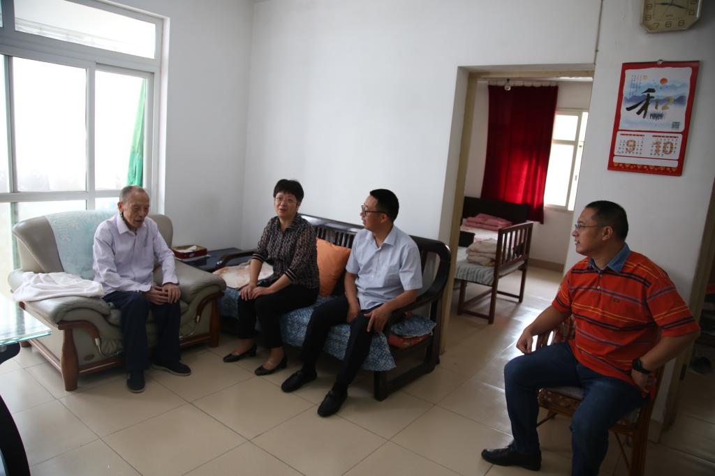 为了落实中央、省、市各级部门的文件精神,传达党和国家对建立新中国作出特殊贡献的离休老同志的关心和爱护,9月26日,在即将迎来中华人民共和国成立70周年之际,学校党委委员、副校长江洁,党委委员、宣传部部长、学生处处长李平权,党委委员、组织人事处处长李超一行代表全校师生到离休老同志家走访慰问。