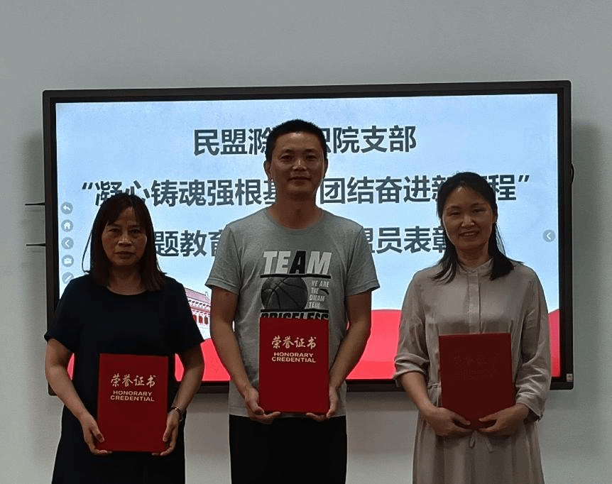 会上,对先进盟员进行了表彰。民盟滁州市委副主委肖陆飞宣读了《关于表彰民盟滁州市委2022年度先进支部和先进个人的决定》(盟滁字〔2023〕4号)。支部盟员蔡忠弟老师荣获民盟滁州市委授予的优秀盟员称号,龚厚仙老师和张宝霞老师同时荣获民盟滁州市委授予的参政议政先进个人称号。