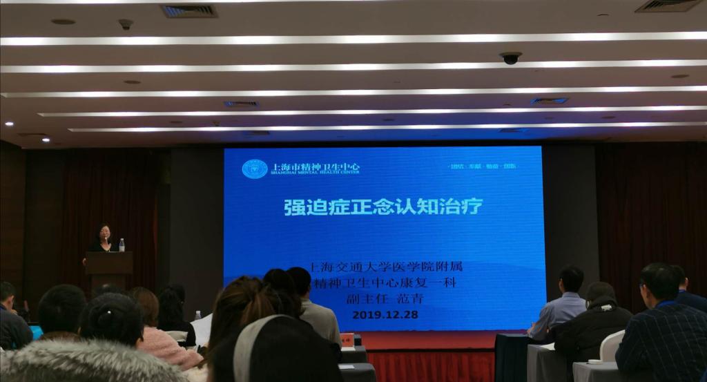来自上海交大医学院附属精神卫生中心的范青副主任作了《正念干预强迫症的实践与反思》专题报告,就基于正念认知行为治疗的强迫症专病干预理论与操作指南,进行了深入浅出的讲授。