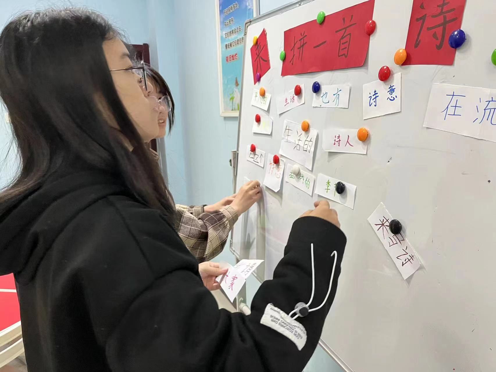 为加强学生心理建设,培养学生对中华优秀传统诗词的兴趣爱好,5月29日下午,校心理健康教育中心举办2023年5.25心理宣传月系列活动之二 “拼出心乐”拼贴诗活动。本次活动由校心理健康教育中心举办,部分学生代表参加。