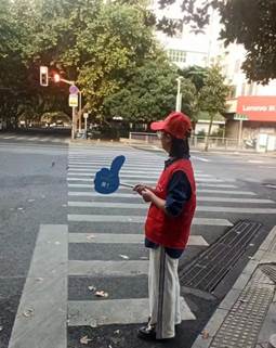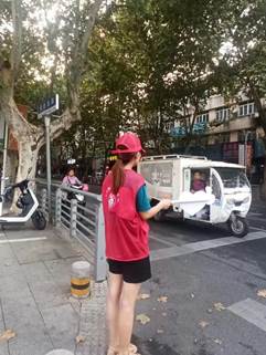 9月17日下午,学生工作处工作人员认真开展路口文明交通执勤工作。