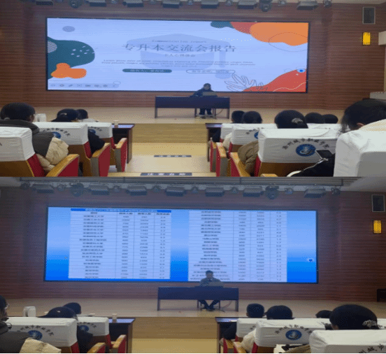 交流会上,三位同学各自分享了自己专升本的考试经历。首先,黄正权着重分析了专升本考试的政策要求,并就自己如何准备的专升本考试做出细致解答,从考试科目、各类题型的学习技巧为起点,分享了自己的考学经历,以此鼓舞大家,坚定学历提升的信念。接着,姜雨欣从“勤奋”、“计划”、“心态”三个关键词出发,毫不保留的分享了自己的学习经验。苗佳庆为大家讲解了如何考试以及通过自学成功升本的经历,让大家坚定能够考取理想的本科院校和专业的决心。三位同学他们或幽默风趣,引得现场同学们开怀大笑;或诚恳平和,引来同学们频频点头。现场座无虚席,气氛持续高涨,掌声一次次想起。