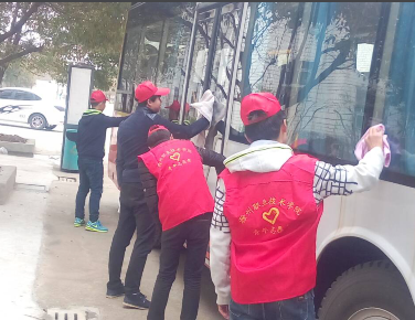 志愿者们还开展了多项义务劳动,他们来到凤凰坝水库,发扬吃苦耐劳的作风,辛勤劳动,清扫道路和绿化带,擦拭护栏,鲜红的团旗迎风飘扬,忙碌的志愿者们受到了来往行人的称赞。志愿者们还对学校的校车进行义务清洗,他们认真地清洗每一个角落。经过近一个小时的清洗,服务队完成既定目标。