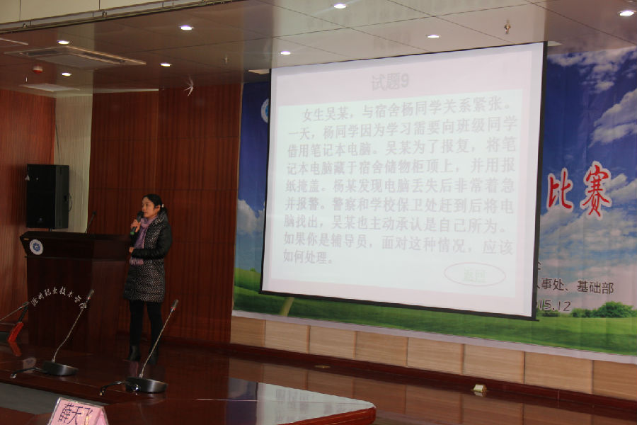 为推动和引领学院辅导员队伍职业化、专业化发展,促进辅导员之间相互交流、相互学习,进一步提高广大辅导员的职业能力和服务水平,根据学院整体工作安排和要求,自2015年11月23日制发《awc777万象城娱乐官网关于举办第二届辅导员职业能力比赛的通知》以来,在院领导的关心与支持下,在学生处的精心组织下,在组织人事处、基础部等相关职能部门的大力协助和各系部的积极参与下,学院历时近一个月的第二届辅导员职业能力比赛于12月18日圆满落幕。