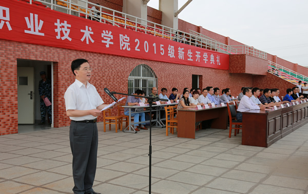 典礼上,教师代表、经济贸易系辅导员伍媚,在校学生代表、机电工程系2013级机电一体化专业张子帅,新生代表、土木工程系2015级建筑工程技术专业史玖一分别作了发言。