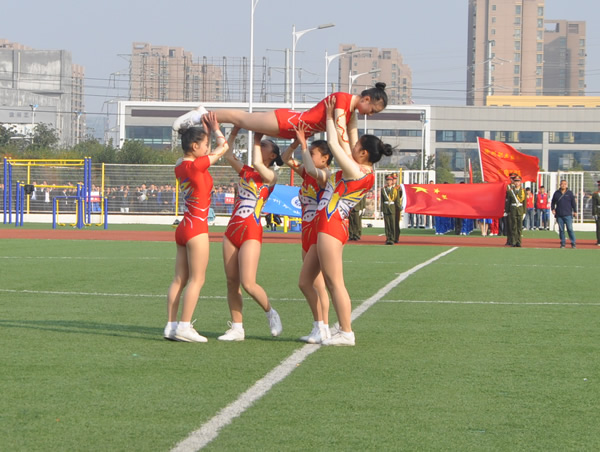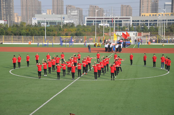 开幕式上,师生齐唱校歌《江山代有人才出》,同学们还表演了韵律十足的广播操。随后,学生健美操队闪亮登场,用动感舞动青春,引起全场的轰动。