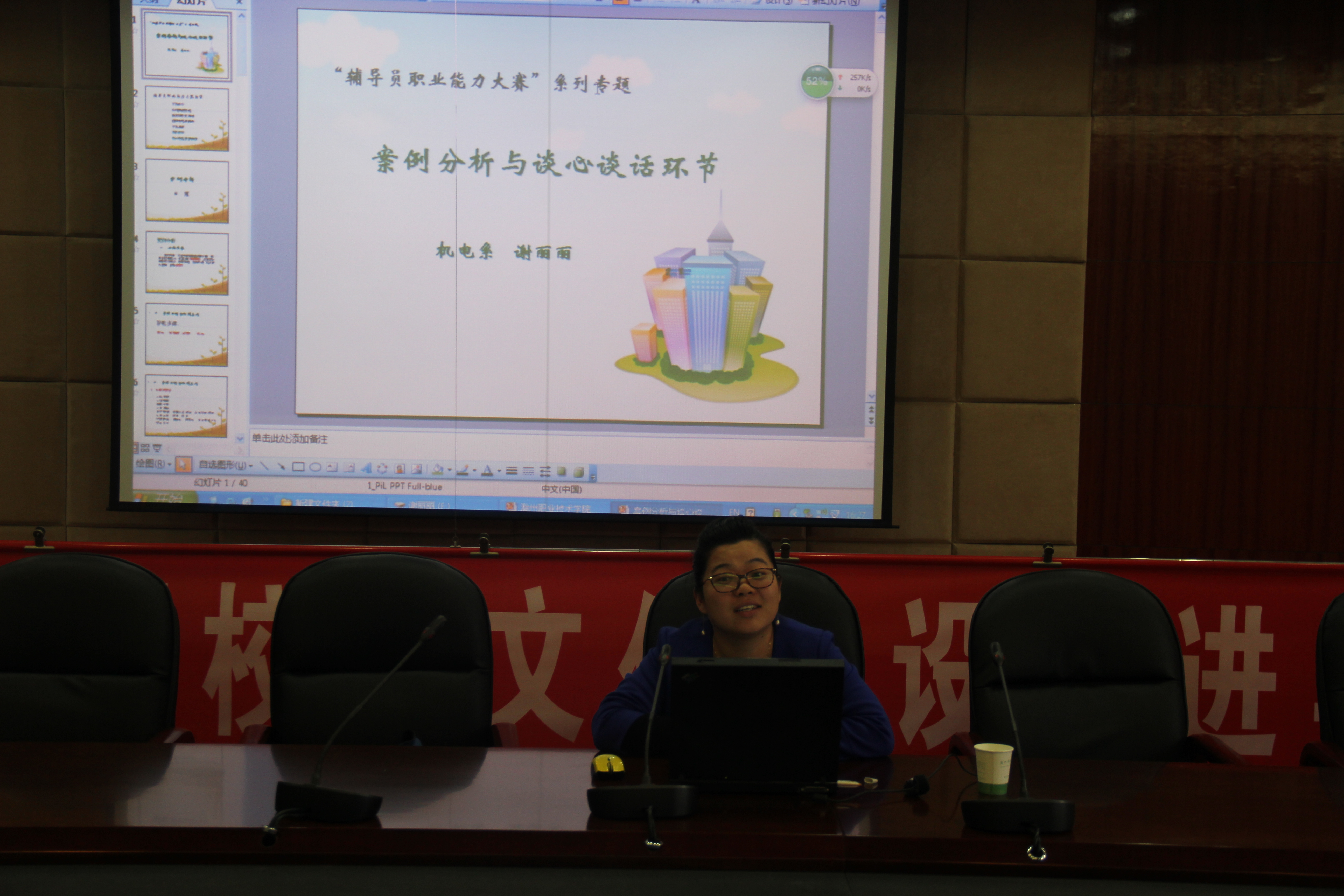 谢丽丽结合自身比赛的亲身经历,对赛事中“案例分析与谈心谈话环节”的内容和应注意的事项作了诠释。