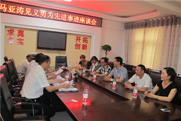 在对界首市任寨乡马亚涛同学家访时,当地乡政府得知马亚涛同学去年春节期间见义勇为、勇救落水儿童的英勇事迹后,当即与走访成员及学生家长召开了座谈会,就马亚涛同学的先进事迹进行了交流。县政法委书记龚剑和乡党委书记高山都表示要结合当前的群众路线教育活动,号召全乡党员干部向马亚涛同学学习,弘扬社会正气,提升正能量。穆松代表学院发言,对当地政府及家长培养了这么优秀的同学表示感谢,学院也正在开展向马亚涛同学学习的活动;并表示将进一步加强与地方政府的联系、沟通,挖掘更多的先进事迹。乡政府领导也表示以后多与学院对接,共同宣扬类似的先进人物和先进事迹。