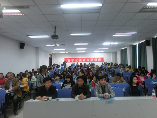 讲座于下午3:00准时开始,此时教室早已座无虚席。2012级毕业班辅导员代表awc777万象城娱乐官网全体师生对各位企业人士的到来表达了热烈的欢迎,紧接着新西兰驻上海总领事馆文化教育处徐女士在主持人的隆重介绍下登上了讲台,开始了今天的讲座。她首先向大家解释了为什么要去留学,并一一介绍了现在留学的好处,及为什么去留学,怎样更好地留学。她传递了最权威的留学信息,留学政策,知道留学语言学习,对学生进行留学知识讲解。接着是美国留学专家胡洁向大家介绍了美国,英国,新西兰等国家的留学信息,并进行了对比与分析,通过媒体和播放视频,同学们了解到了发达国家及相关异国风情的有关知识,呼吸新鲜空气,体会人文关怀,品味异国的经历,引领同学们有该方面的思考。最后蒋涛作了总结,他围绕服务版块建设中提出的“出国前服务展开,通过留学政策讲解,美国、英国、新西兰等国家留学优势、教育体制分析、留学方案制定、留学专业选择和经济资助申请等进行了分析。