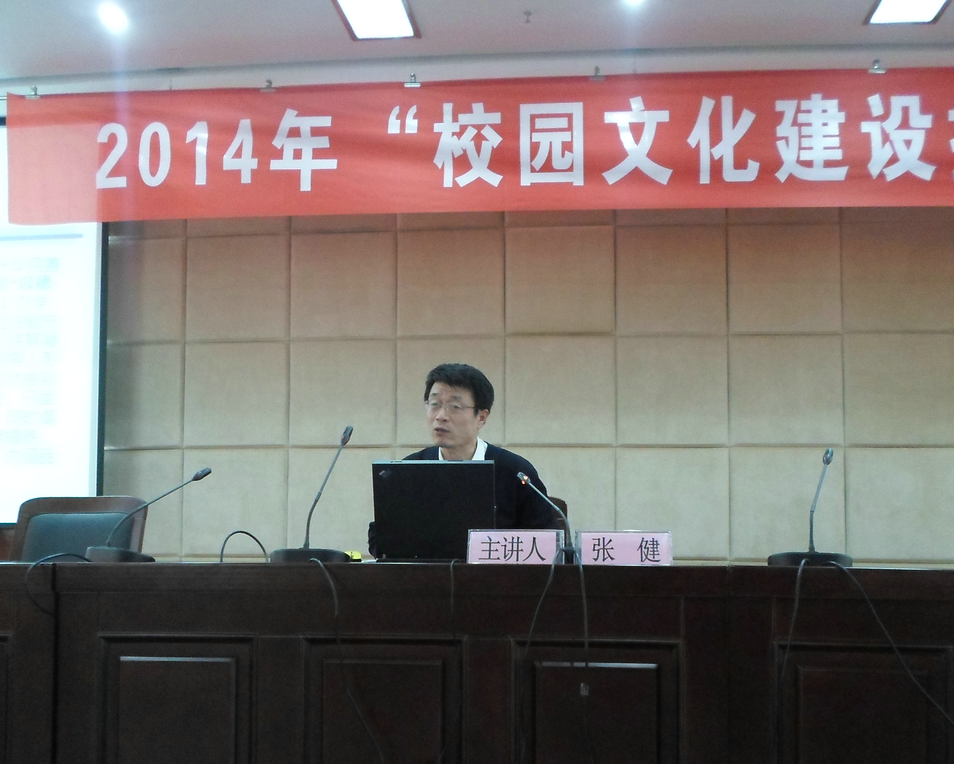 校园文化是学校教育不可缺少的重要组成部分,是学校所具有的特定的精神环境和文化氛围。4月23日下午,结合2014年“校园文化建设推进年”活动安排,学院举办了“校园文化建设推进年”专家讲座。本次专题讲座由学院职教研究所所长、学院学报主编张健教授主讲。院党委书记张勇,院党委委员、副院长汪上,各系书记、辅导员,以及各系优秀学生代表共300余人现场听取了讲座。院学生处处长李平权主持讲座。