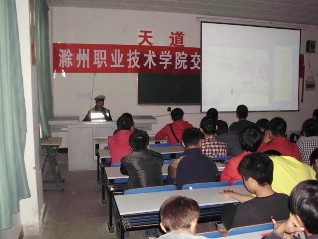 为了教育引导学生养成文明交通习惯,增强交通安全意识,提高自我保护能力,2013年10月23日滁州市交警支队二大队郑涛指导员应邀来院做交通安全教育讲座。汽车系150余名学生现场听取了讲座。