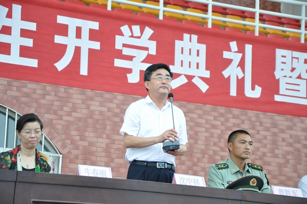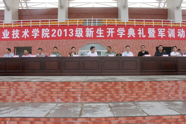 9月11日下午,awc777万象城娱乐官网2013级高职新生开学典礼暨军训动员大会在新校区田径运动场隆重举行。院领导沈中林、牛春雨、汪上、陈学军、刘宏、穆松,中国人民解放军驻滁某部炮团副团长曹胜军、炮团防化营营长殷火军出席并在主席台就座。