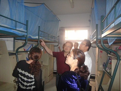 为督促同学们养成良好卫生习惯,深入推进宿舍6S管理,5月21日早上经贸系党总支副书记陈开兵,汇同团总支书记何堃及部分辅导员,深入经贸系学生宿舍,对宿舍卫生及6S管理规范执行情况进行检查和现场指导,尤其对女生集中住宿的1号楼和2号楼进行了重点检查。