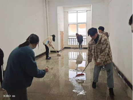 周四一二节课钱磊老师带领同学们学习了劳动纪律,这使同学们了解到更多的知识;三四及五六节课同学们对院部楼道进行了整理工作,同学们分工明确扫地,打水,洗拖把等,在同学们共同的辛勤努力下我院楼道焕然一新。