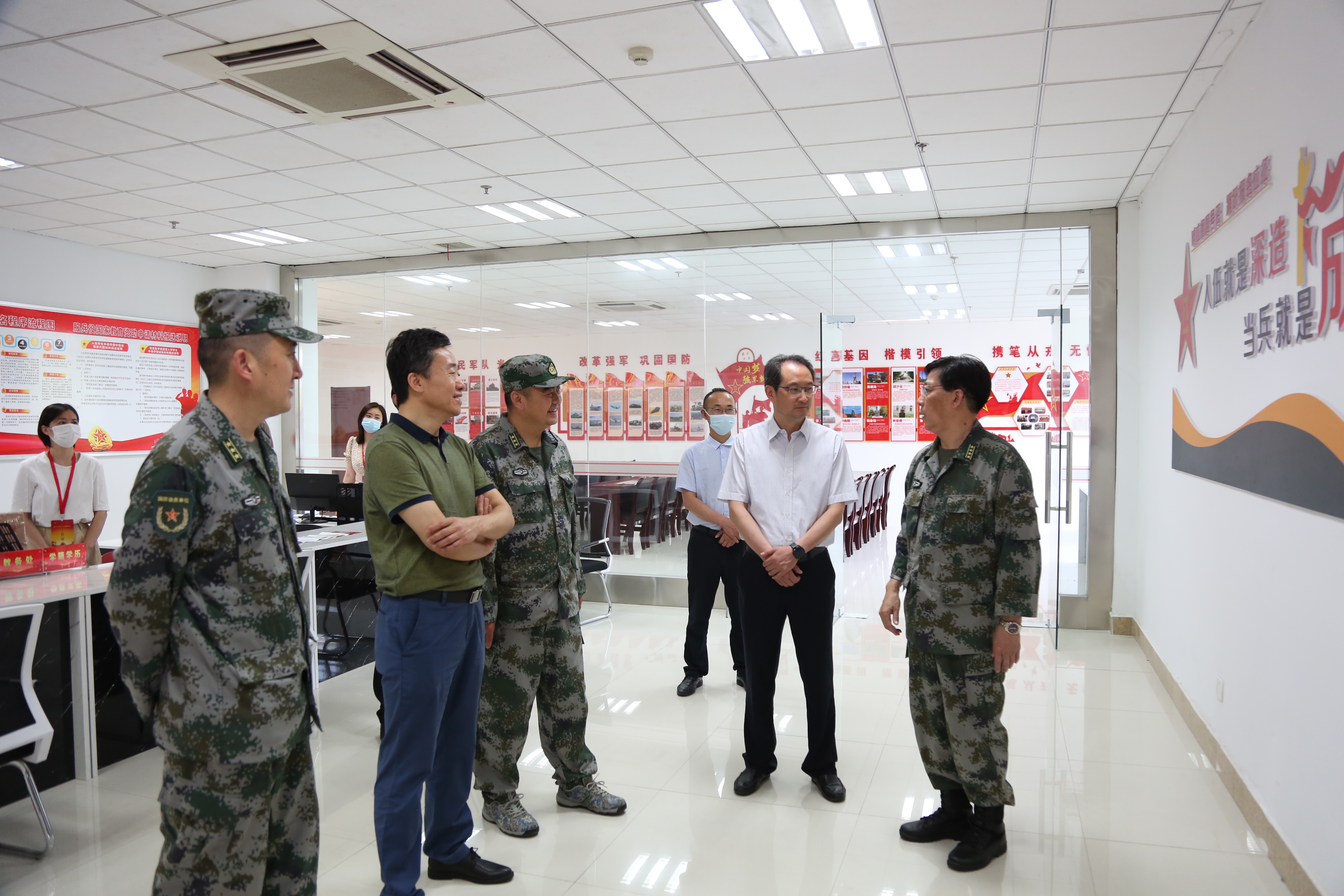 滁州军分区国防动员处处长韩东、南谯区人武部凌菊等陪同视察。校学生工作处、宣传统战部、教务处、招生就业处及征兵工作站相关人员参与了本次活动。