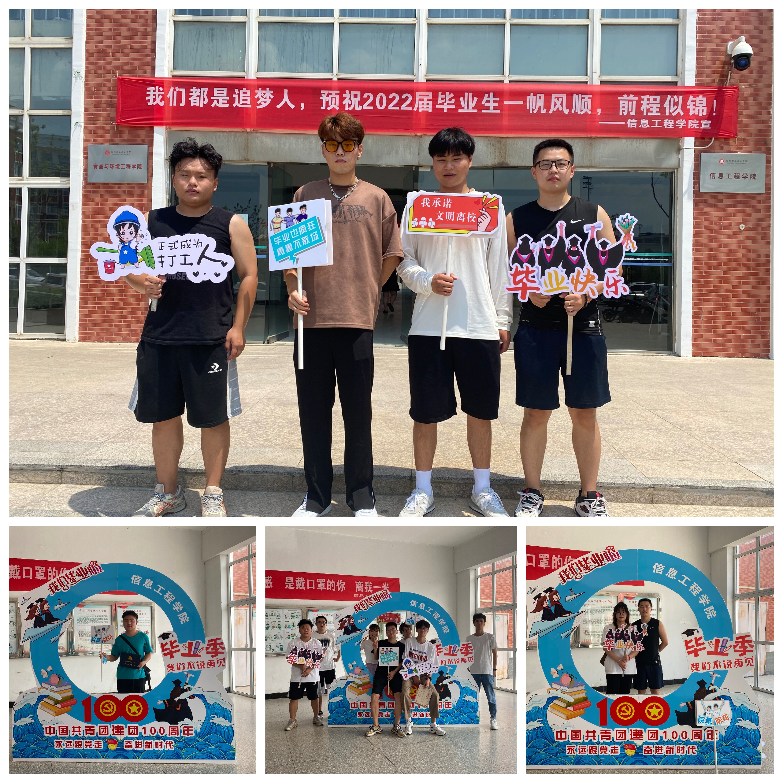 正值2022年毕业季,为切实做好疫情防控期间毕业生离校服务工作,确保毕业生安全顺利、文明有序离校,信息工程学院结合学校《关于做好2022届毕业生文明离校工作的通知》要求,开展了形式多样、内容精彩的毕业生文明离校系列活动,为2022届毕业生创造更文明、更温暖、更难忘的离校氛围。