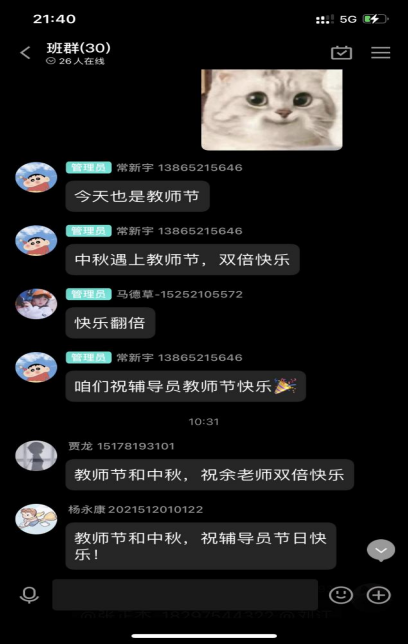 今年中秋节恰巧遇上教师节,同学们在中秋佳节团圆的喜悦中,也没有忘记表达对老师的祝福和感恩,通过各种各样的方式给老师们送上了双节的祝福。