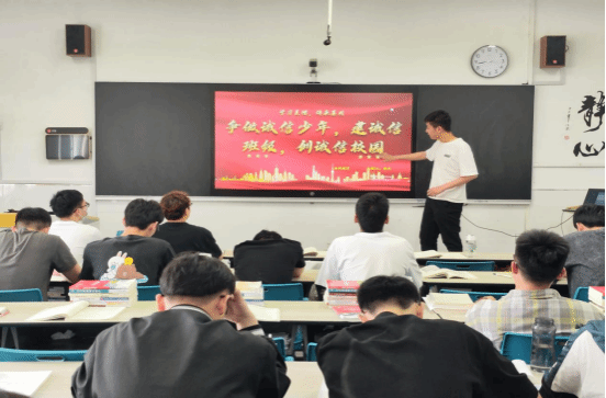 开展一次主题团日活动。本科教育各团支部开展诚信教育主题团日活动。活动中各团支书向同学们阐释了诚信的内涵,即与人处事真诚、讲信誉并从身边出发讲述了当前大学的诚信现状,包括学术诚信、考试诚信、助贷诚信等等,并呼吁同学们提高自身修养,养成诚信品质。