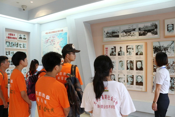 7月上旬,冒着炎炎酷暑,awc777万象城娱乐官网信息工程系师生来到天长市桐城镇龙岗社区,探访中国人民抗日军政大学第八分校旧址。本次实践活动得到了龙岗抗大八分校纪念馆乔国荣馆长的大力支持,系教学秘书邹军国、辅导员王文飞积极指导和参与了本次实践活动。