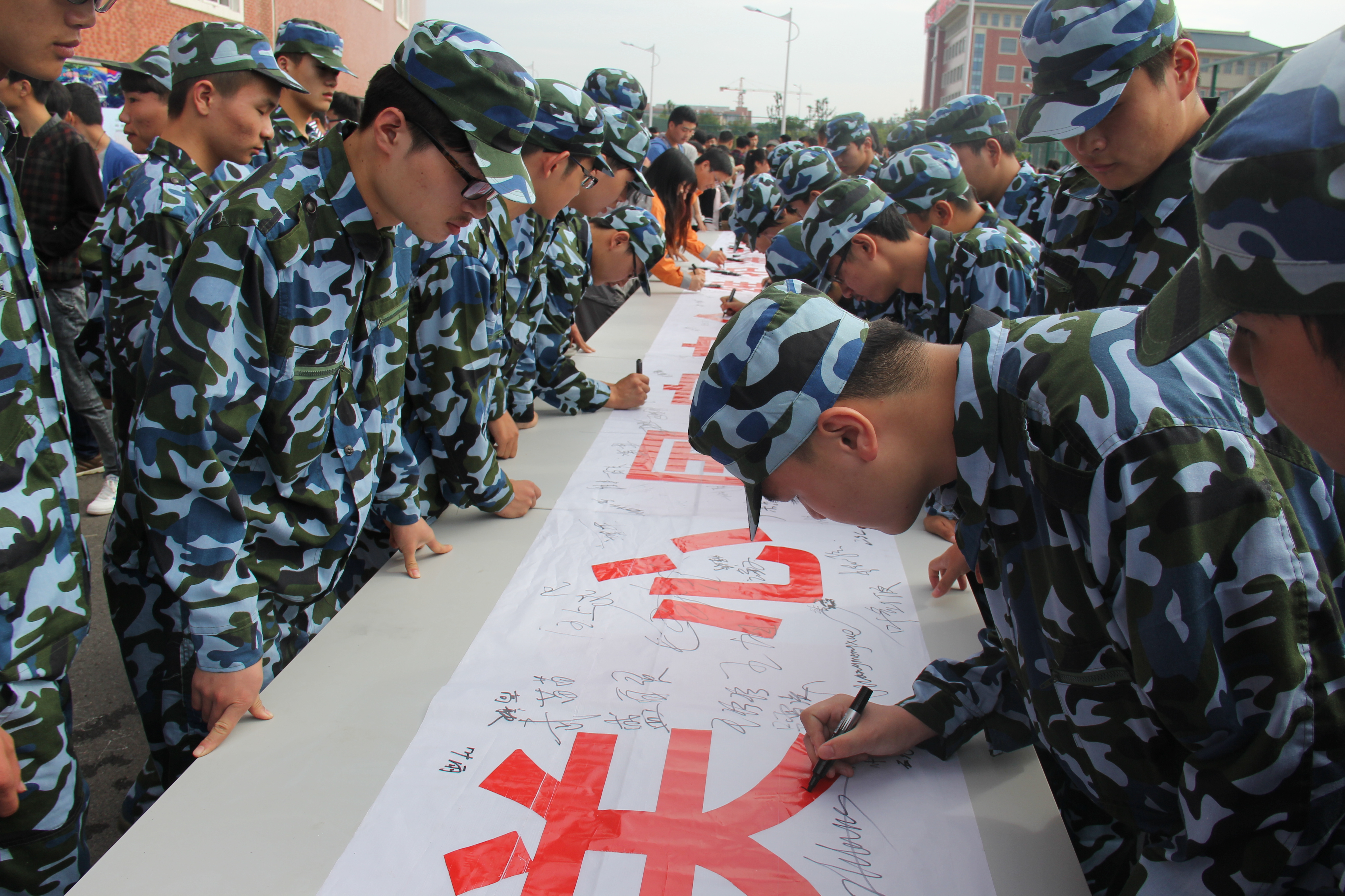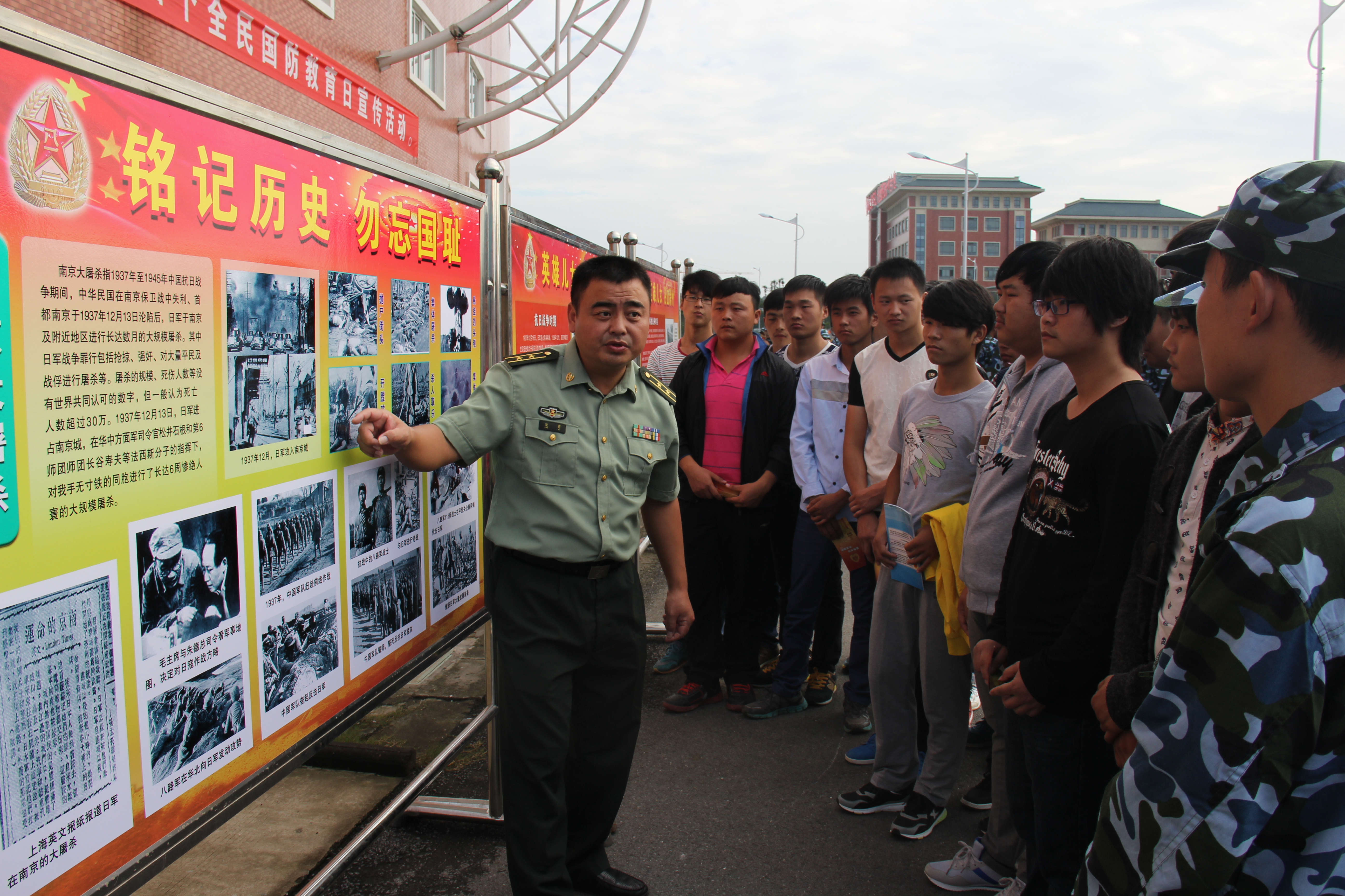 一千余名师生参观了图片展,并在国防教育日主题横幅上进行了签名。另外当天同时还进行了国防教育宣讲、发放征兵宣传单和现场咨询等活动。